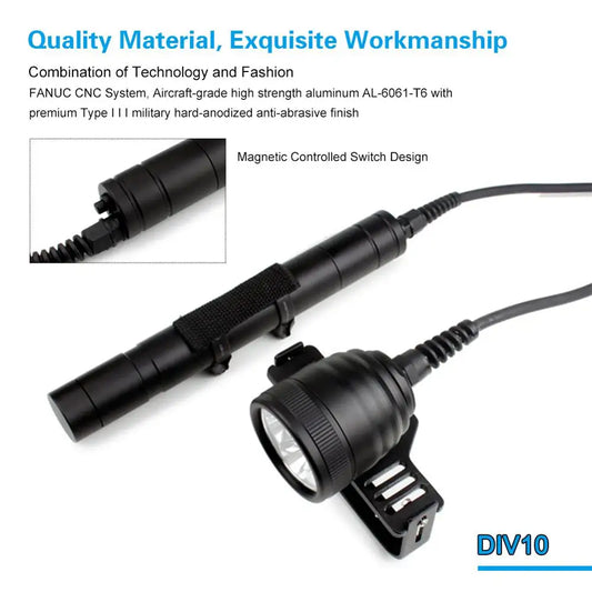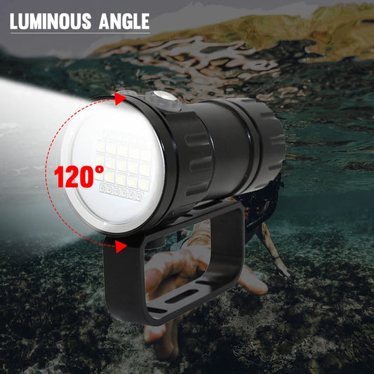 Asafee D16 100M Deep Diving Underwater Flashlight 120 Degree Luminous Fill Light Rechargeable Waterproof Lamp Dual Switch 3 Mode