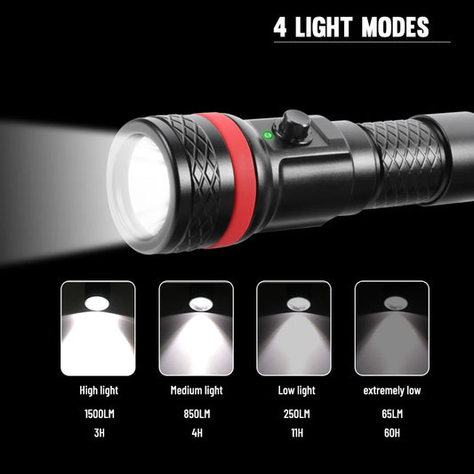 Asafee 100M Diving Flashlight SST20 LED 1000LM 100M Underwater IPX8 Waterproof Lamp Bulit-in Battery Rechargeable Torch