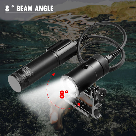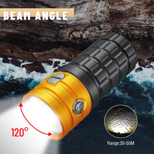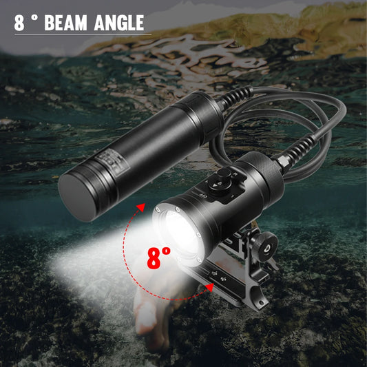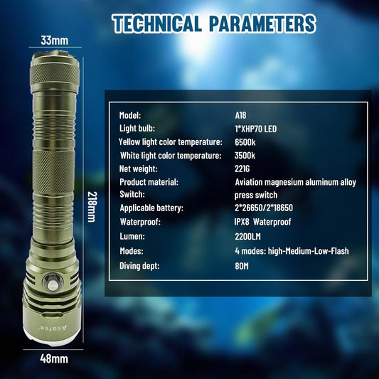 Asafee 80M Deep Diving Flashlight IPX8 Waterproof 80°c Degree Photography COB 6000LM Torch Range 300-500M Double Switch