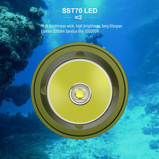 Asafee DT70 Professional Scuba Diving FlashLight SST70 LED 3000LM 251Meter Depth Waterproof Super bright Lamp Rechargeable Torch